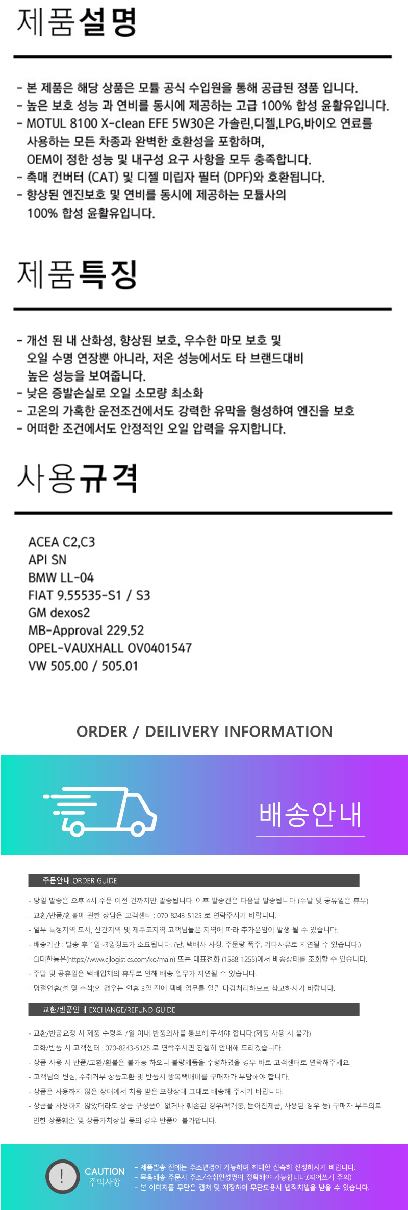 모튤 MOTUL 8100 X-CLEAN EFE 5W30 1L