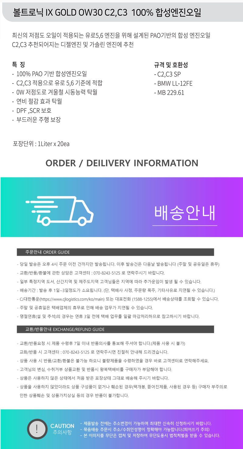 볼트로닉 IX GOLD 골드 0W30 C2, C3 1L