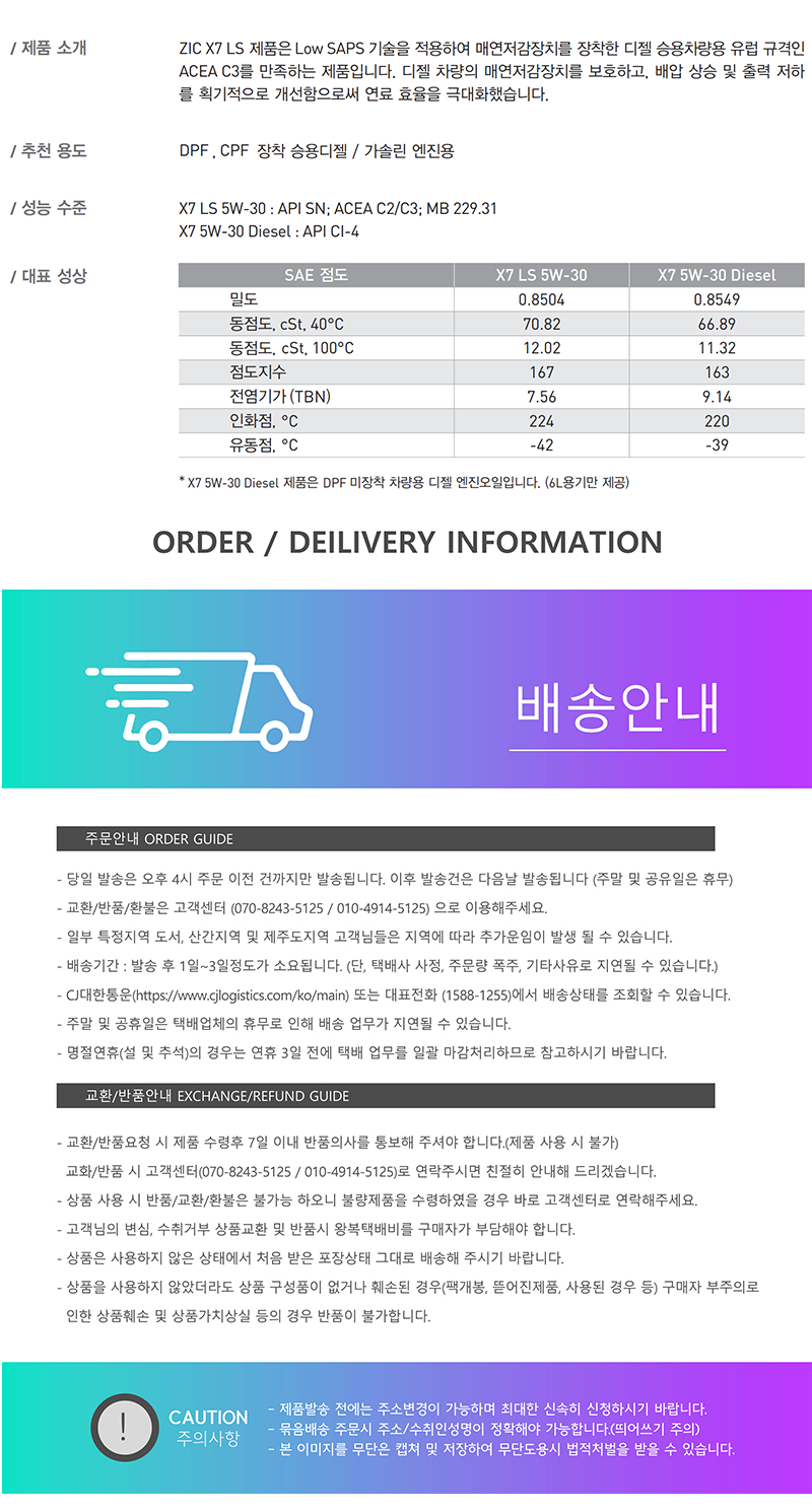지크 ZIC X7 LS 5W30(DPF) 18L