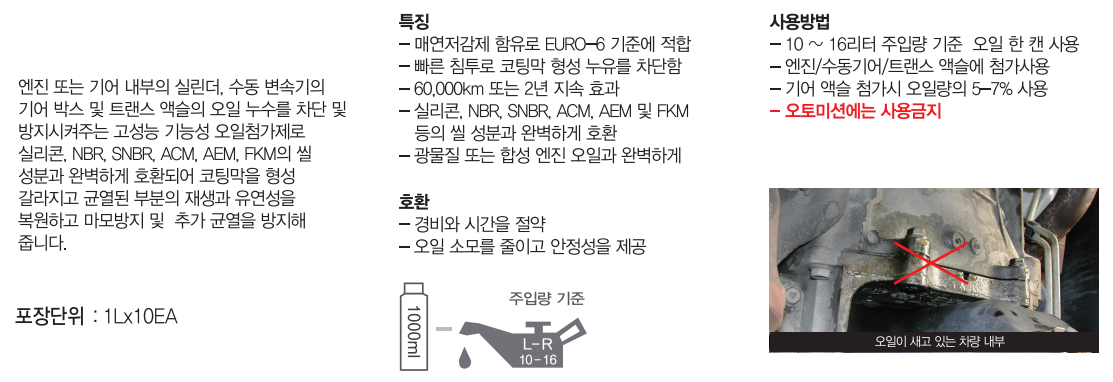 100,000km까지 반영구적으로 누유 방지/차단 효과가 있어