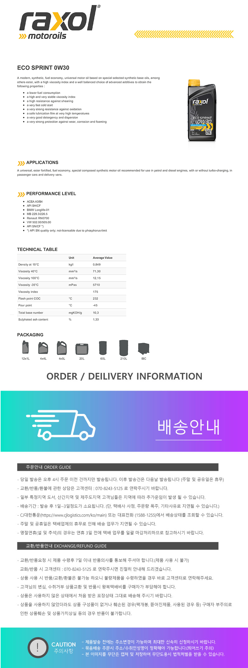 락솔 에코 스프린트 ECO SPRINT 0W30 1L