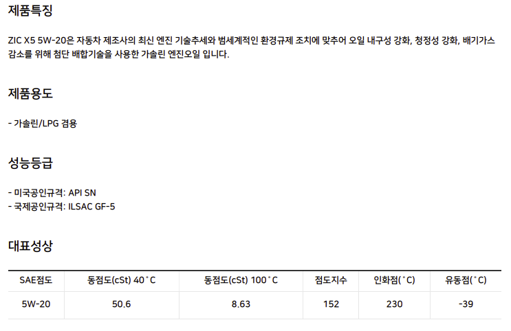 지크 ZIC X5 5W20 16L